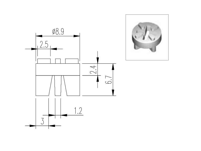 TO5-A1Spacer for transistor with TO5 case, ABS, Grey colour, RoHS compliant.