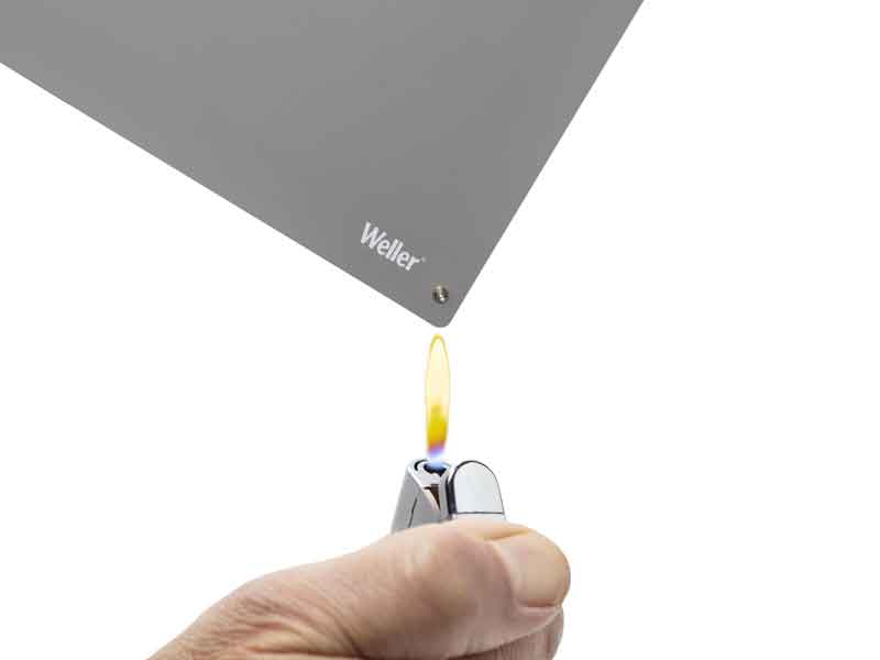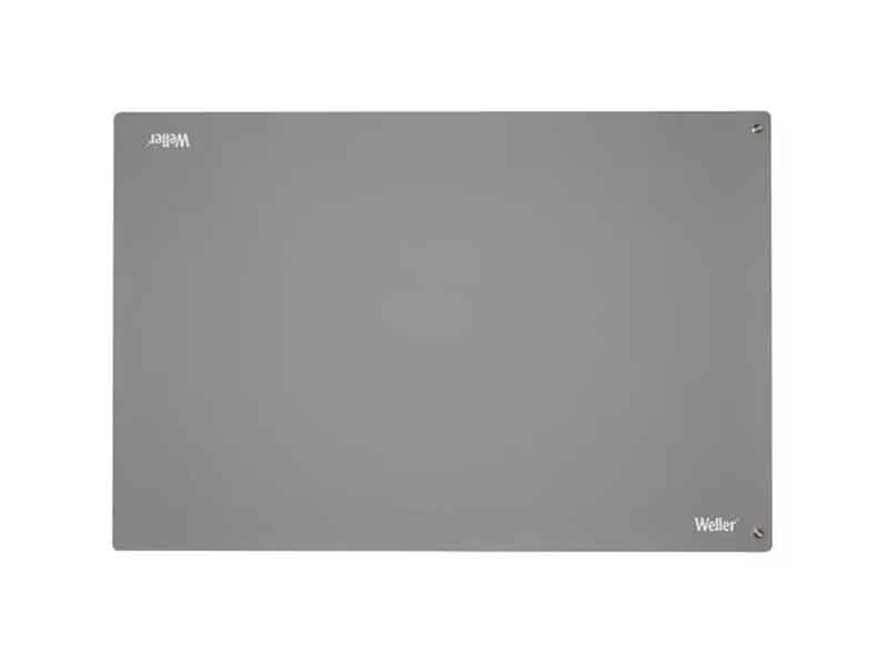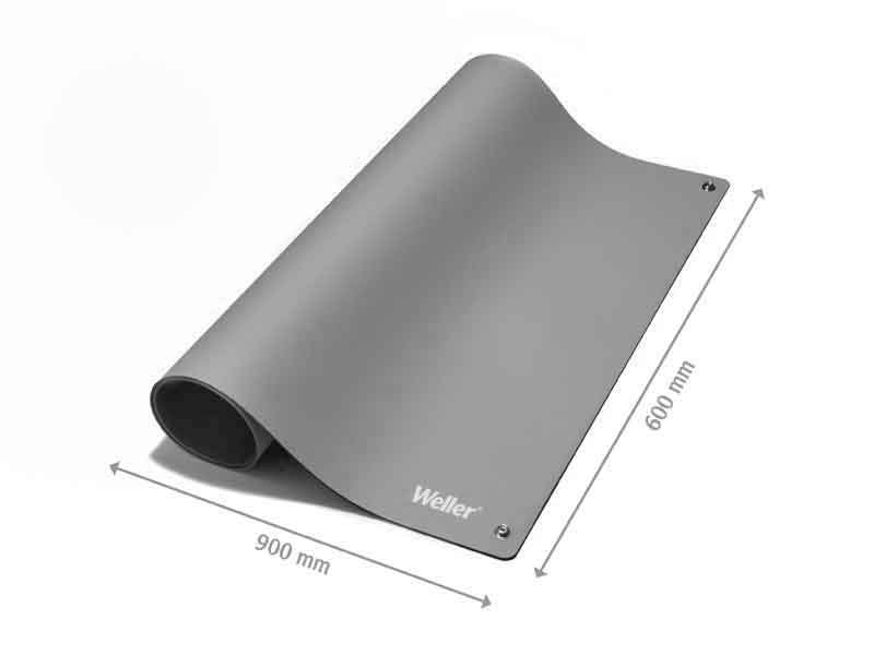 Anti-static ESD safe benchtop mat, double layer model with grey surface and printed Weller logo.