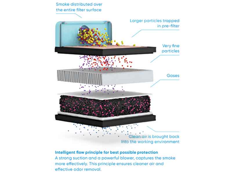 Filtration system: HEPA H13 particle filter with gas filter + PM1-75% pre-filter.