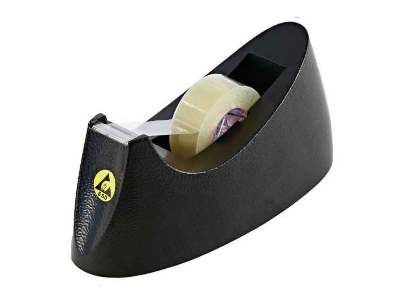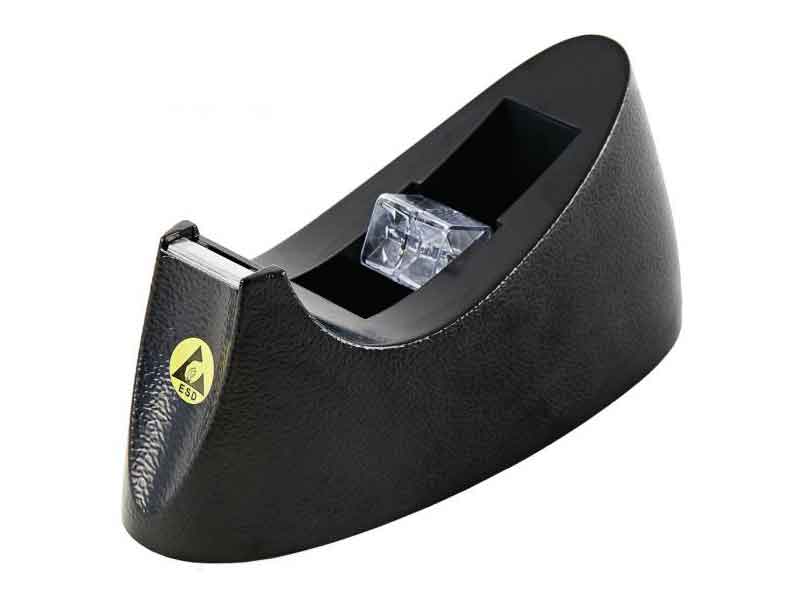 Dispenser antistatico ESD da banco per nastro adesivo, colore Nero con simbolo ESD Giallo.