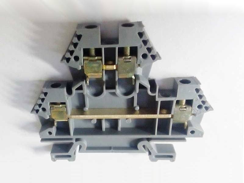 Per cablaggio su guida DIN con doppi contatti a vite sovrapposti, da 4 mmq.