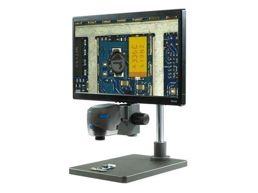 VE Cam 50 – Microscopio per ispezione ottica digitale Full HD con campo visivo 50 mm, completo di stativo a braccio Boom.
